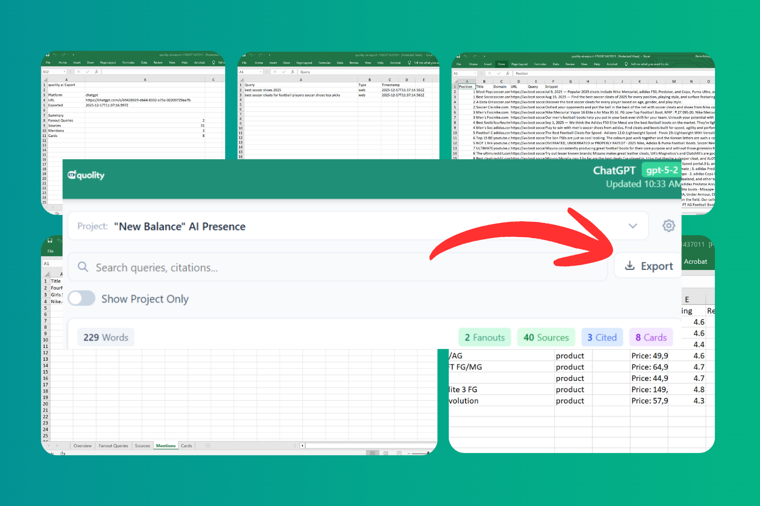 Download everything - fanouts, sources, citations, mentions, and cards - to track, compare, and optimize.